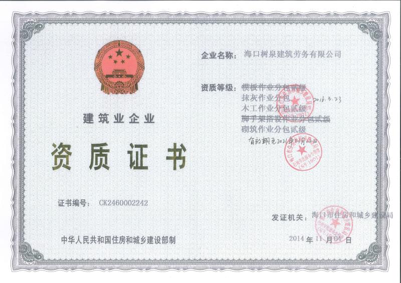 海口樹(shù)泉建筑勞務(wù)有限公司成立于2011年,公司位于海口,其前身是一家專業(yè)建筑施工隊(duì),自2004年即開(kāi)始在海南從事建筑勞務(wù)施工。自成立至今,公司已經(jīng)擁有一支科學(xué)管理、質(zhì)量過(guò)硬、能打硬仗,搶工期的專業(yè)隊(duì)伍。能獨(dú)立承擔(dān)大中型工業(yè)與民用建筑 、室內(nèi)外裝修、各類機(jī)電設(shè)備安裝工程。代表工程有海口濱海華庭、三亞時(shí)代海岸T01/02/04/05棟高層、合肥東海花園二期、陵水富力灣B區(qū)高層、三亞金中海(酒店)、瓊海大印經(jīng)典花園、海口環(huán)球海景大酒店(四星級(jí)酒店,在建中)、陵水珍珠大廈(五星酒店)、海口萬(wàn)達(dá)廣場(chǎng)、美蘭機(jī)場(chǎng)二期。